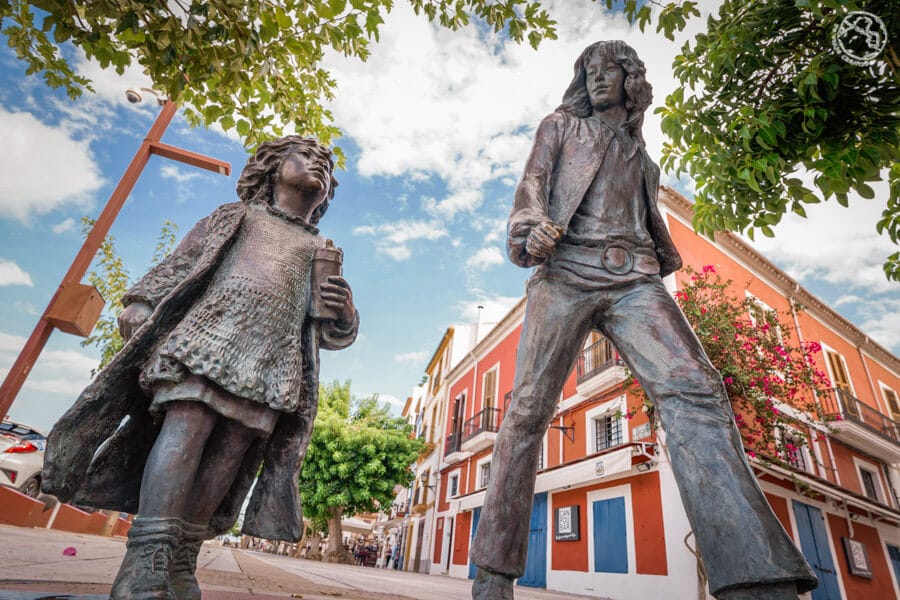 En este lugar se encontraría la Estatua a los Hippies de Ibiza superponiendo el mapa de esta ciudad sobre el de Santiago de Compostela.